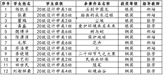 近日,“第五届国际环保公益设计大赛”中国赛区组委会公布获奖名单,91av 2020级设计学类12名同学创作的“传统美术创作”作品荣获银奖4项、铜奖8项。4项银奖作品将获得参加全球总决赛资格。