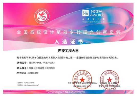 2022年,未来设计师·全国高校数字艺术设计大赛(NCDA)组委会与民政部直管智慧乡村志愿服务中心联合发起“我为乡村做设计”志愿服务活动,开展设计赋能乡村振兴案例征集活动,得到高校积极响应。此次活动共征集到一万余件以乡村振兴为主题的设计作品,500个申报“全国”高校设计赋能乡村振兴创新案例”。经过主办方和专家评审,从征集案例中精选142个案例汇编成册,由上海交通大学出版社出版《设计的力量:全国高校设计赋能乡村振兴创新案例》一书(以下简称《创新案例》),该案例于2023年4月8-9日在重庆举办“第58·59届中国高等教育博览会之高校教育赋能乡村振兴发展大会”上正式发行,我校燕耀老师师生团队研究成果《建设数字安塞,筑基乡村振兴》入选《创新案例》,并于4月10日起该案例在学习强国进行展示。