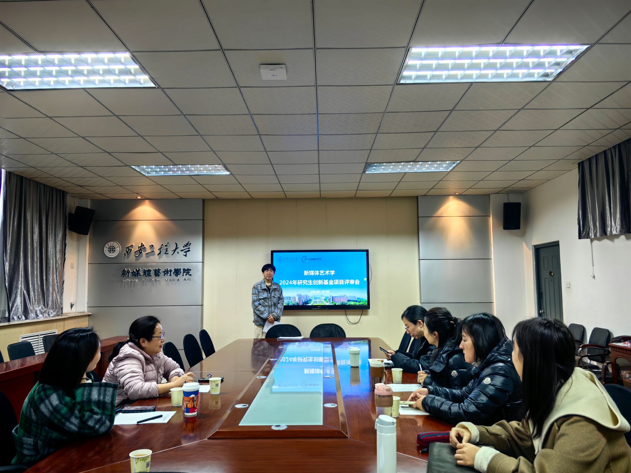会上,22级广播电视专业1班张旭升首先进行了阐述,他以延安红色文化遗产数字化活态传承研究为题,针对延安红色保护实践进行了详细分析及汇报。其次,22级广播电视专业1班季宇萌进行了阐述,她以共情叙事:国内人文社会类纪录片内涵解读与时代特征研究为题,针对“人文关怀”与“共情传播”对全媒体时代信息传播中的纪录片叙事研究向在座老师进行了详细汇报。