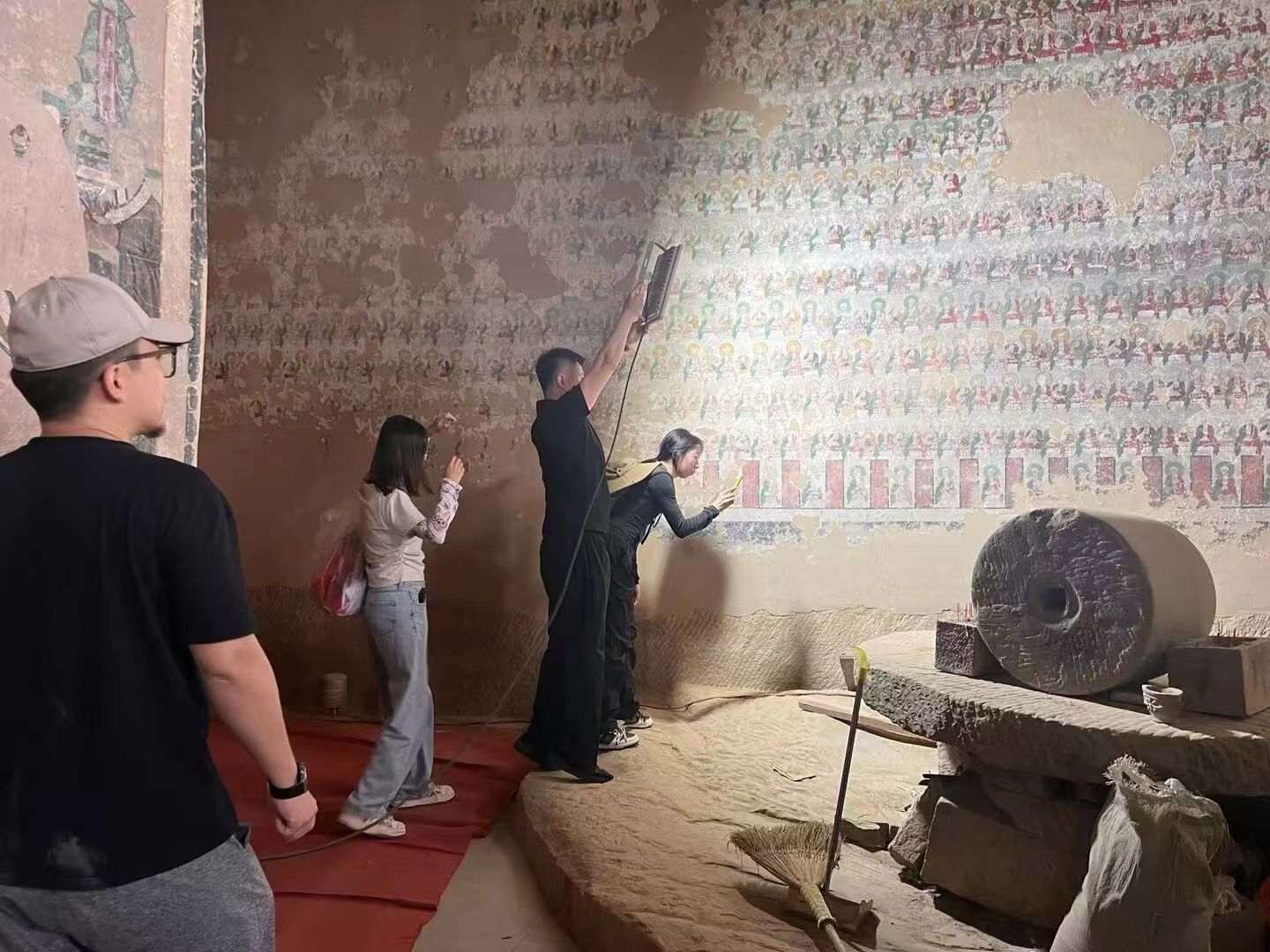 今年暑假,在陕西省榆林市悬空寺、西津寺等处的洞窟里,91av 的师生们忙着采集壁画影像,他们手持专业设备,用AIGC(人工智能生成内容)等技术对壁画进行数字化处理,通过3D扫描与建模对榆林地区的寺观壁画进行高精度还原。今后,游客有望通过虚拟现实(VR)或增强现实(AR)在线上近距离、全方位地欣赏这些珍贵的文化遗产。
