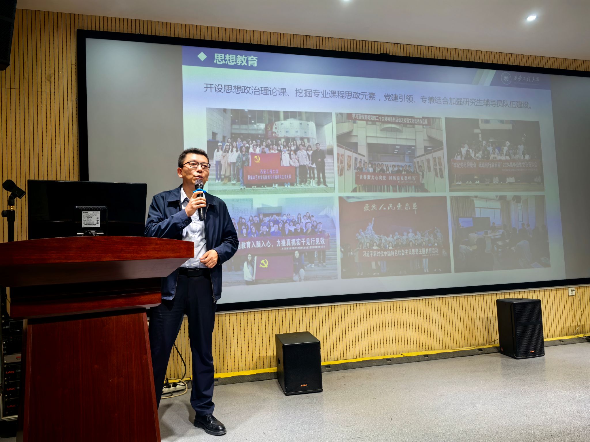 研究生辅导员薛少重点介绍了研究生日常管理工作内容,尤其针对新生普遍关心的奖助学金体系,详细说明各类奖学金的申请条件、评定流程及助研助教岗位的设置与申请方式,为同学们安心投入学业与科研提供清晰的政策指引。