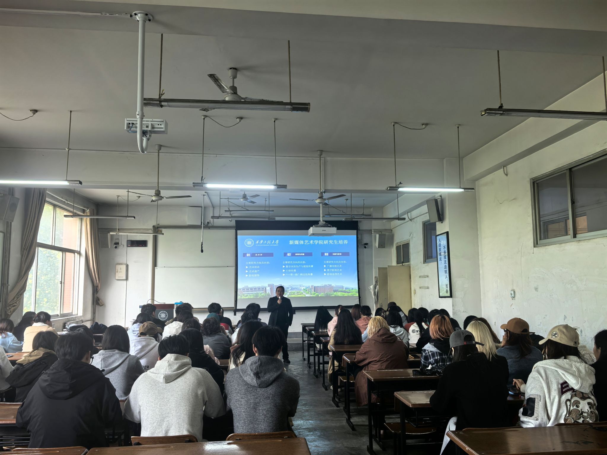 会议伊始,丛红艳首先对各系教师在招生筹备工作中的支持与配合表达诚挚感谢,并以“政策解读+发展引导”为核心,系统介绍学院2026级专业硕士研究生培养体系:从学位点建设背景、“面向新媒体产业需求,培养创新实践型人才”的核心培养目标,到广播电视、动画、戏剧影视美术设计等主要研究方向的课程模块与实践重点,再到初试科目设置、复试考核维度等关键报考信息,均进行了细致拆解。她特别强调,希望各系教师以“精准对接学生需求”为原则,做好招生政策传导与报考指导工作;同时鼓励2022级本科生把握升学机遇,结合自身专业兴趣与职业规划,积极申报学院硕士项目,以扎实准备冲刺理想成绩。