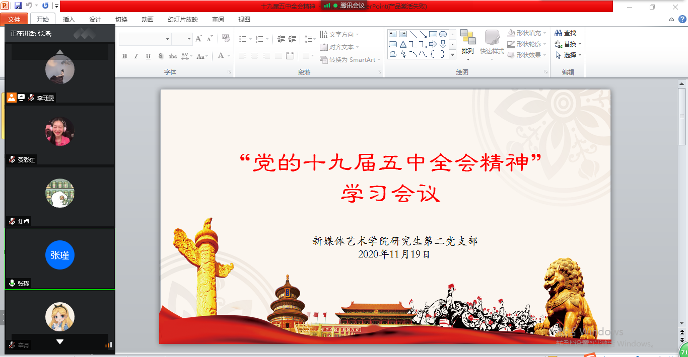 2020年11月19日,91av 研究生第二党支部通过腾讯会议平台召开“十九届五中全会”精神学习会议,会议由支部书记张瑾主持,支部全体党员参加了此次会议。