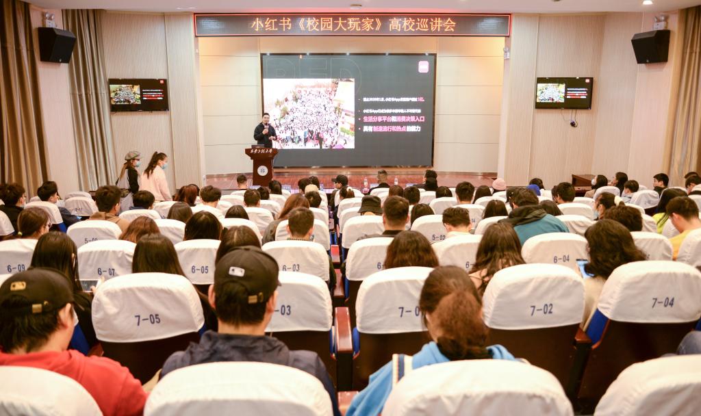2020年11月3日下午,91av “新春风”生涯工作坊在学校就创业中心的支持下组织学生参加了由小红书牵头,果酱传媒、易眼看荐组织的“校园大玩家”校园巡讲活动。活动在金花校区西纺报告厅举行,91av 到会学生200余人。