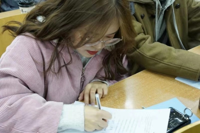 首先由辅导员康新兴向同学们讲述诚信考试的重要性,并简单阐述了学校对考试作弊行为的认定和处理办法,告诉同学们应该树立诚信意识,认清考试舞弊行为的危害性和不可弥补的严重后果。同时,动员同学们积极备考,一分耕耘,一分收获。大会第二项,主持人随机在会场上邀请学生宣读《91av 学生手册》上有关考试违纪处分的处罚细则,同时,部分同学也列举了学校发生的学生因考试作弊受到严重处分的案列,以实际例子来引导学生严肃考风考纪,诚信对待考试。大会第三项,由学生代表郭卓宣读《诚信考试承诺书》,并以班级为单位进行签字,作出承诺。大会第四项,全体观看以考试作弊为题材的警示电影《天才枪手》,影片根据2014年轰动一时的亚洲考场作弊案列改编,告诫学生对待自己要诚实,保持那份正义感,才是真正的通向成功,沐浴阳光。