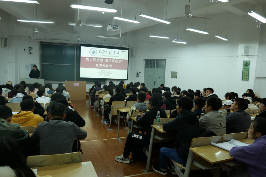 2019年11月19日,91av 与纺织科学与工程学院在临潼校区B-235教室联合举办“畅诉理想赋 谱写青春梦”交流分享会。91av 2019级辅导员康新兴、纺织科学与工程学院2019级辅导员苏娜,两学院2019级新生参加活动。