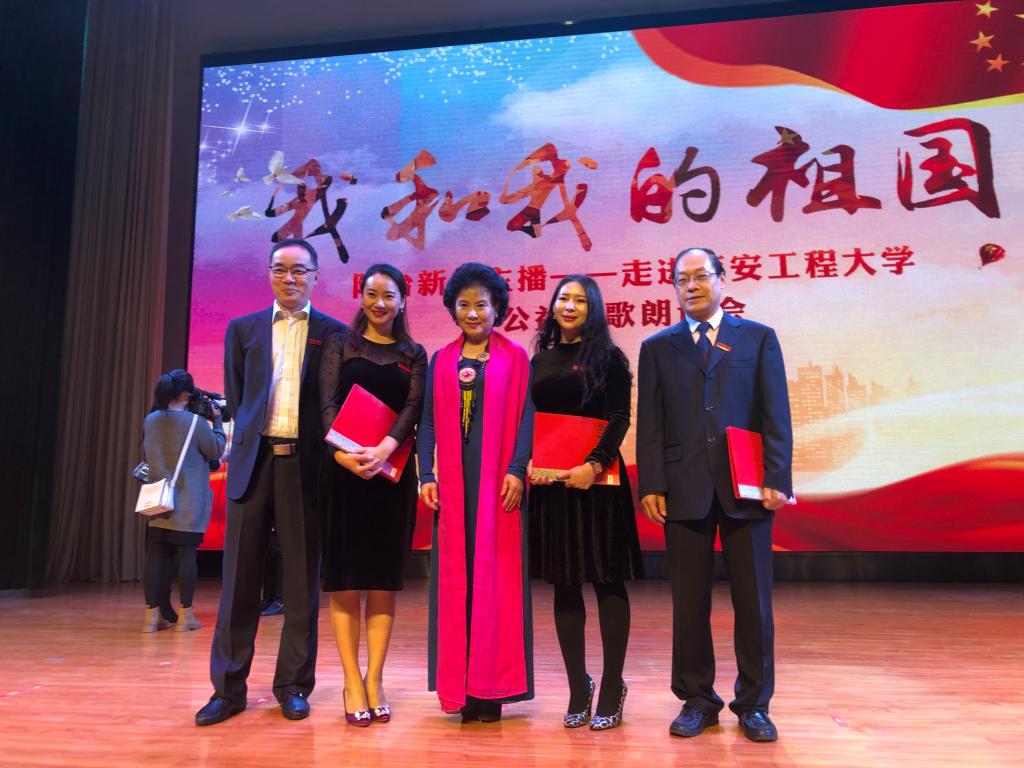 2019年10月30日,91av 教工第二党支部的教师和播音系的部分同学共同参加了《我和我的祖国》公益诗歌朗诵会,与陕西广播电视艺术家和新闻主播们携手共颂“我和我的祖国”,共同吟诵爱国诗篇,用声音歌颂伟大祖国和它艰苦卓越的发展历程。