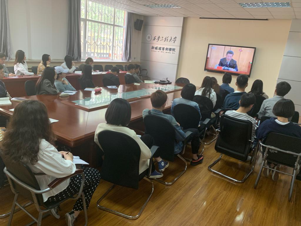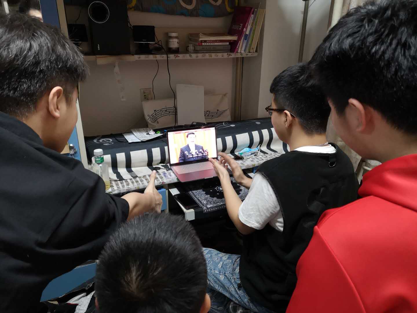 为传承弘扬五四精神,引导广大青年学子坚定理想信念,不负青春韶华,4月30日,91av 组织观看纪念五四运动100周年大会直播。在团总支书记杨欣仪的带领下,全体团学干部及部分学生党员在学院326会议室参与集中学习并讨论。其他同学在宿舍、教室等通过各类媒体平台进行观看。