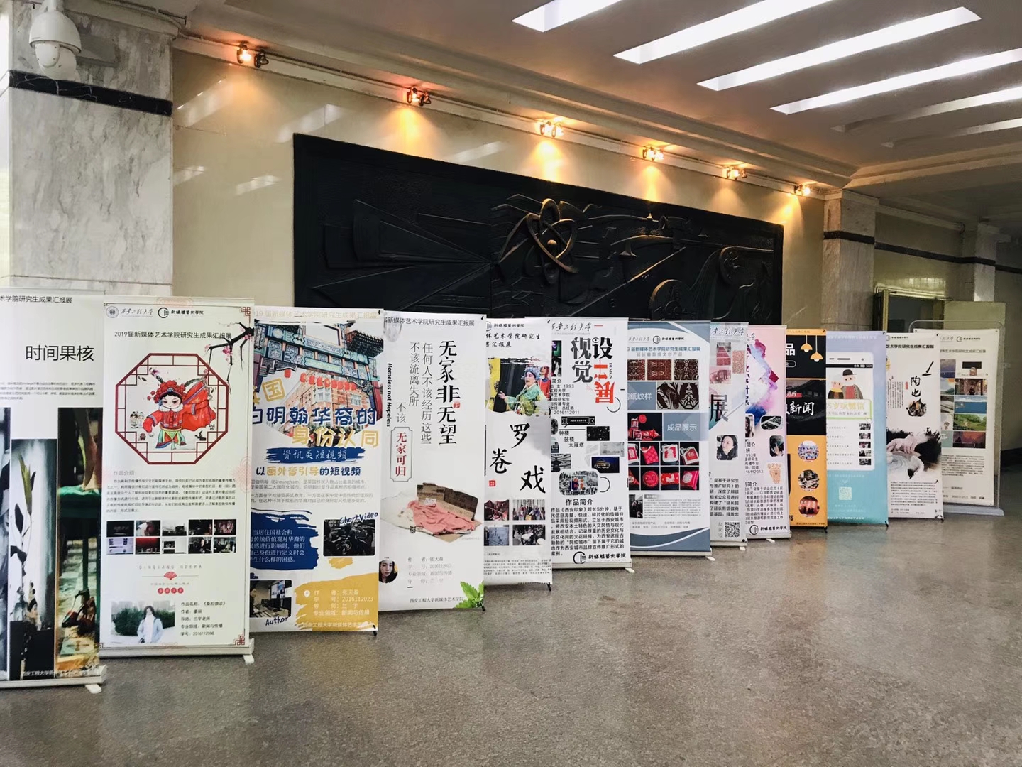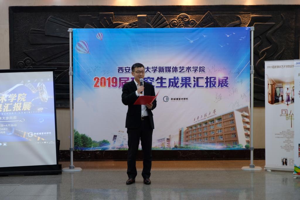 为进一步加强91av 研究生的教育管理,探索研究生教学培养的有效方式,提高研究生的培养质量,加快一流水平的学科建设,4月25日91av 2019届硕士研究生毕业成果汇报展在学院二楼大厅隆重开幕。资深媒体人、陕西广播电视台主任记者,自媒体益读社创始人刘晓斌先生、陕西广播电视台影视娱乐频道副总监张哲女士,91av 党委书记刘江南,副书记赵小峰,研工部部长兼研究生院副院长李伟,91av 领导班子成员、各系部办主任,以及学院师生参与此次开幕。