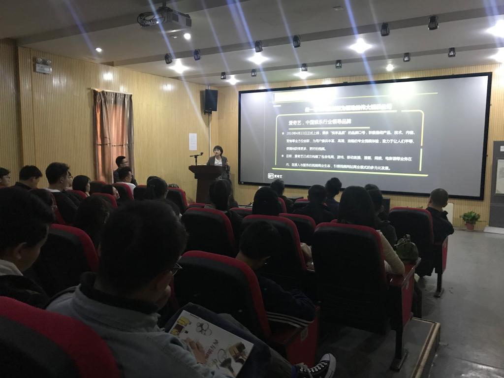 爱奇艺陕西运营总监张晓玲女士,从爱奇艺内容运营开始,为同学们展示了整个内容整合与分发的流程,同时也显示了在目前市场条件下,影视制作依然对内容有强有力的需求,并表达了在高校的环境下,创作内容与推广应该注意的事项。