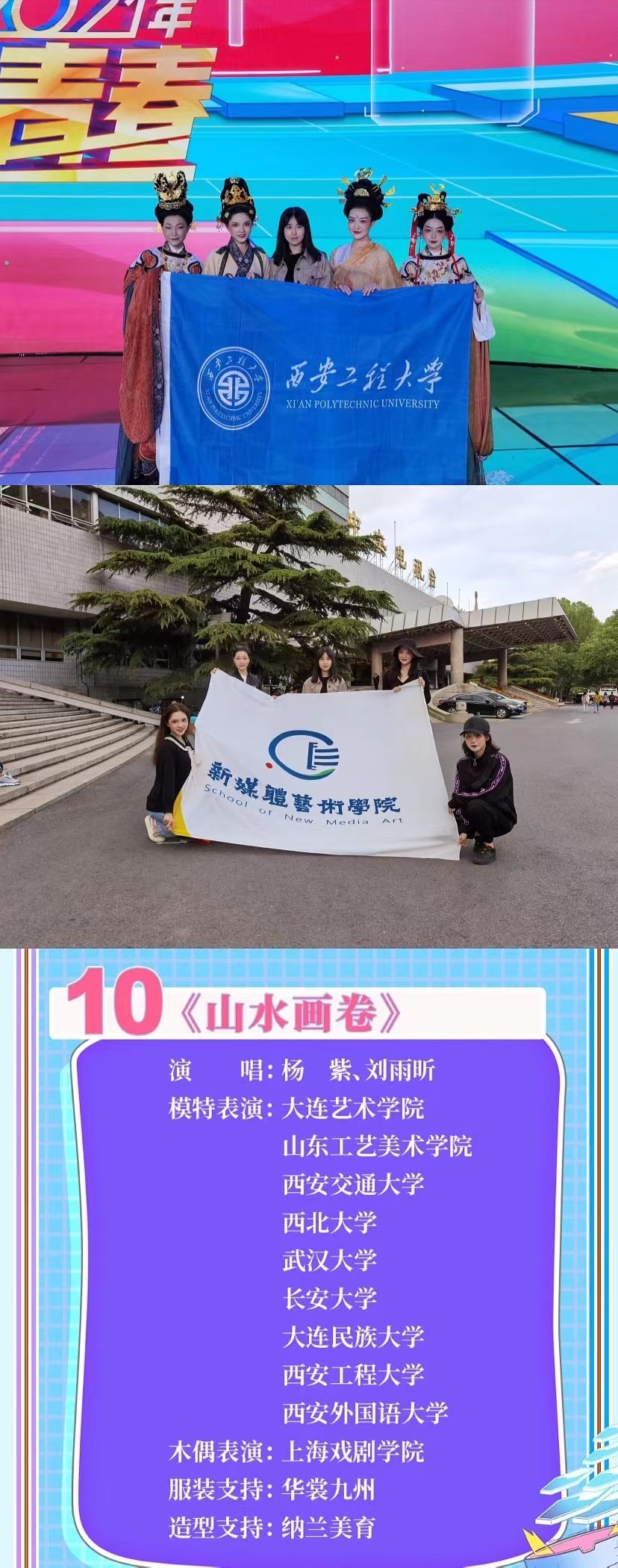 中央广播电视总台《奋斗正青春——2021年五四青年节特别节目》于5月4日晚黄金时间在CCTV-1、CCTV-3、央视频、央视文艺客户端和央视影音联合播出。91av 的四位学生参演了《山水画卷》节目的录制,与杨紫,刘雨昕同台演出!