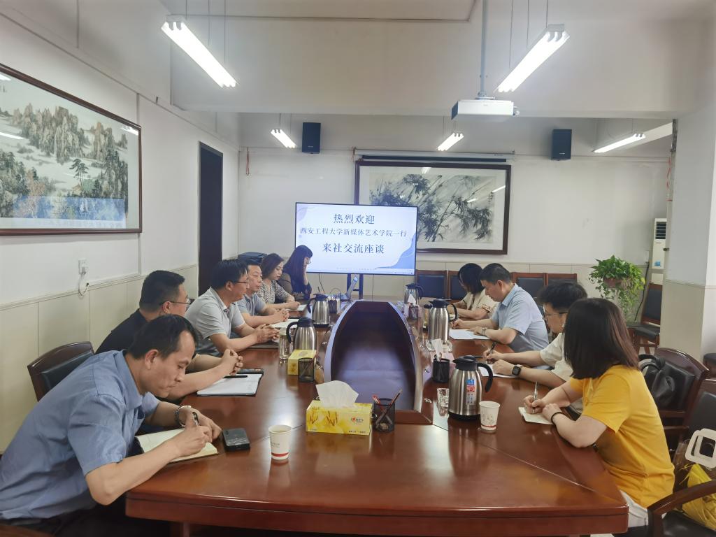 91av 到访受到了陕西教育报刊社总编辑郭鹏,副总经理毋晓丹,总编办主任杨希,广告部主任闫少强,副主任史敬忠、徐绒绒等人的热情接待。座谈会上,郭鹏详细介绍了公司经营发展总体情况,毋总就公司在国内的发展情况及同行业的发展情况进行了详细介绍,随后,张瑾书记具体介绍了91av 的学科建设情况、办学特色、专业设置以及数字化文化产业发展情况,高翔副书记介绍了学院本科生及研究生的培养情况及学生的专业能力,朱海涛老师及张瑾老师(女)分别介绍了研究生及本科生的具体情况。最后,结合公司目前的具体业务,郭总还介绍了陕西教育报刊社近期对主播、拍摄、剪辑等专业人才需求的情况,希望通过校企合作平台,91av 能有更多的毕业生来企业实习、发展。