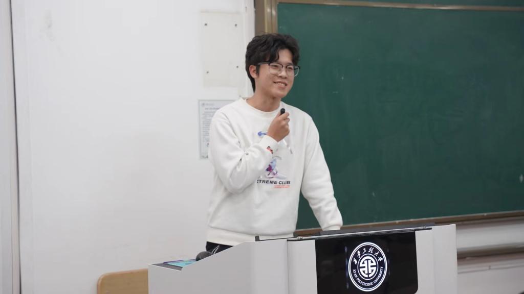 会议最后郭榜程同学为大家介绍了关于科研竞赛的相关知识。他表示,对于在座的同学最关键的是要有去尝试的勇气。“最慢的步伐不是跬步,而是徘徊;最快的脚步不是冲刺,而是坚持。”在这之后需要的是谋定而后动的切题选择和缜密方案。在现场问答环节中郭榜程同学推荐了如”蓝桥杯“、”大创“等有助于同学们成长的竞赛,也就大家关注较多的设计类竞赛该如何准备的问题做出了详细说明并现场以”连接“为题模拟竞赛,教大家如何组织画面,为现场同学了解竞赛通道点亮盈盈明灯。