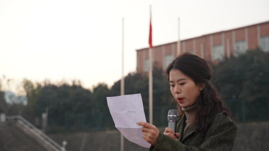 清晨微风轻拂五星红旗,灼灼目光共护国旗飘扬。仪式第二项,91av 设计五班的李覃睿同学进行国旗下演讲,她号召同学们积极投身新时代中国特色社会主义伟大实践,把人生理想融入国家和人民事业之中,把为人民幸福而奋斗作为自己最大的幸福,心中怀山河,才能够担负起时代赋予青年人的重任,领悟红色革命精神,传承红色革命基因。