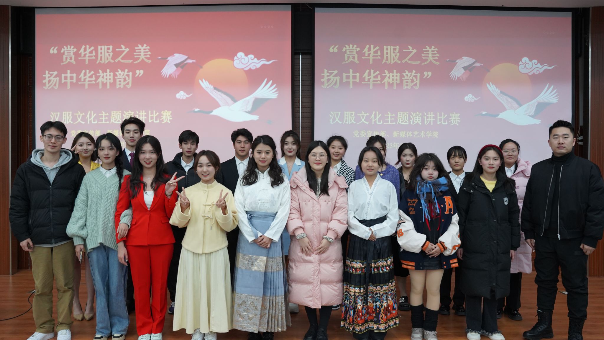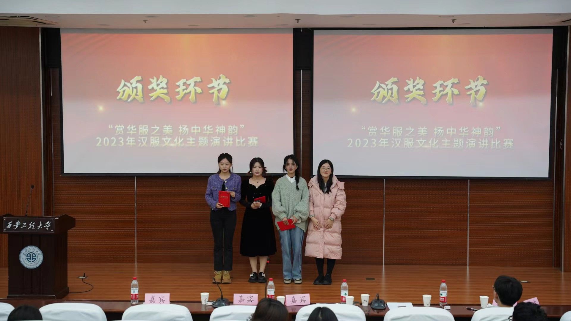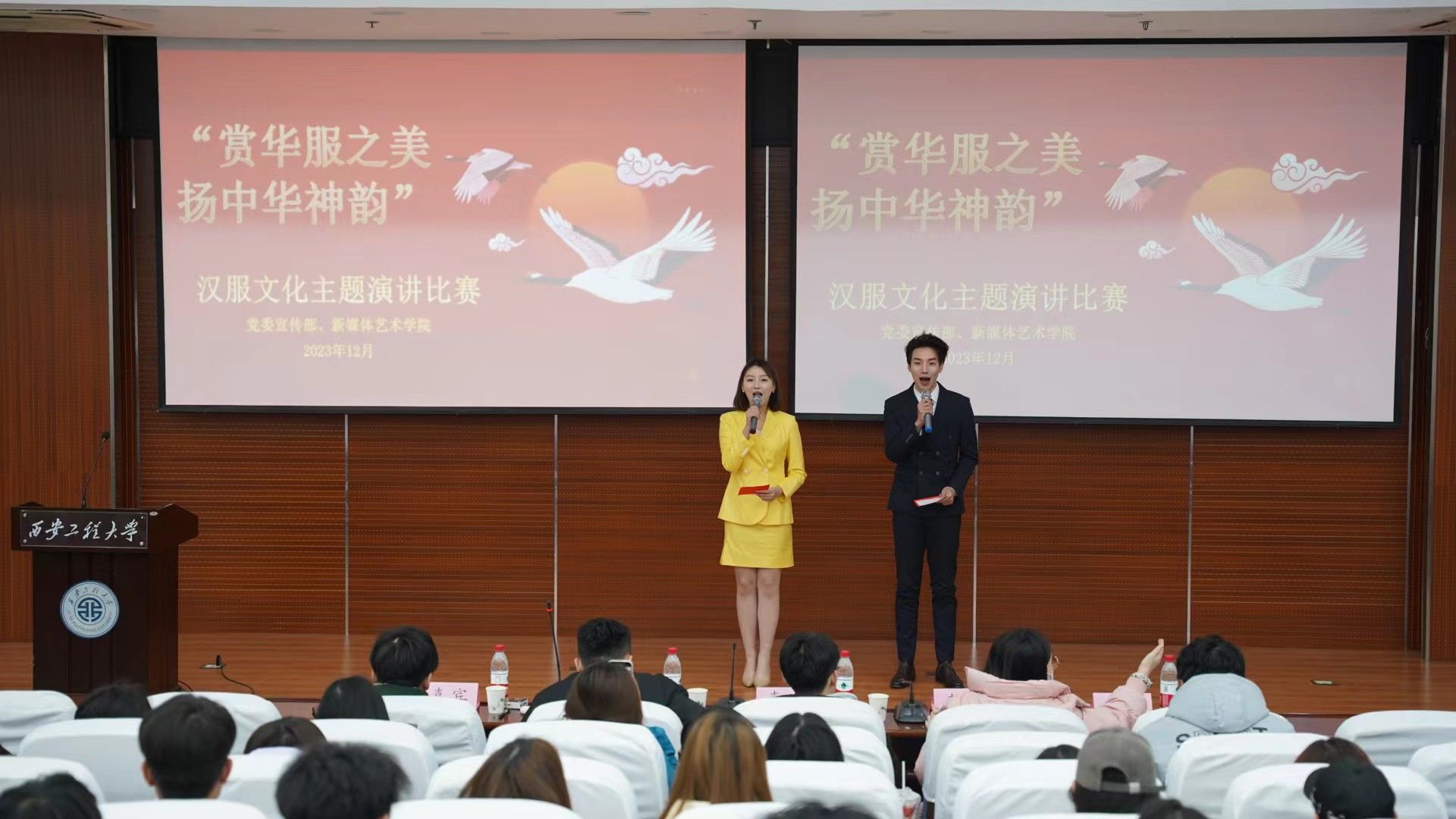 为了营造我校积极传承中华优秀传统文化的良好氛围,发挥“一站式”综合服务优势,宣传汉服文化;同时结合播音与主持艺术学生专业特色,发挥学生演讲、主持、朗诵等专业素养,进一步调动学生学习的积极性、主动性、创造性。在学校党委宣传部指导下,91av 于12月15日晚19:00在临潼校区图书馆二楼报告厅举办了“赏华服之美,扬中华神韵”汉服文化主题演讲比赛。纺织学院赵森、理学院宋琦、城市规划与市政工程学院杜倩、91av 宾田田老师和学生会主席团成员刘莘毓以及学生代表150余人出席本次活动。
