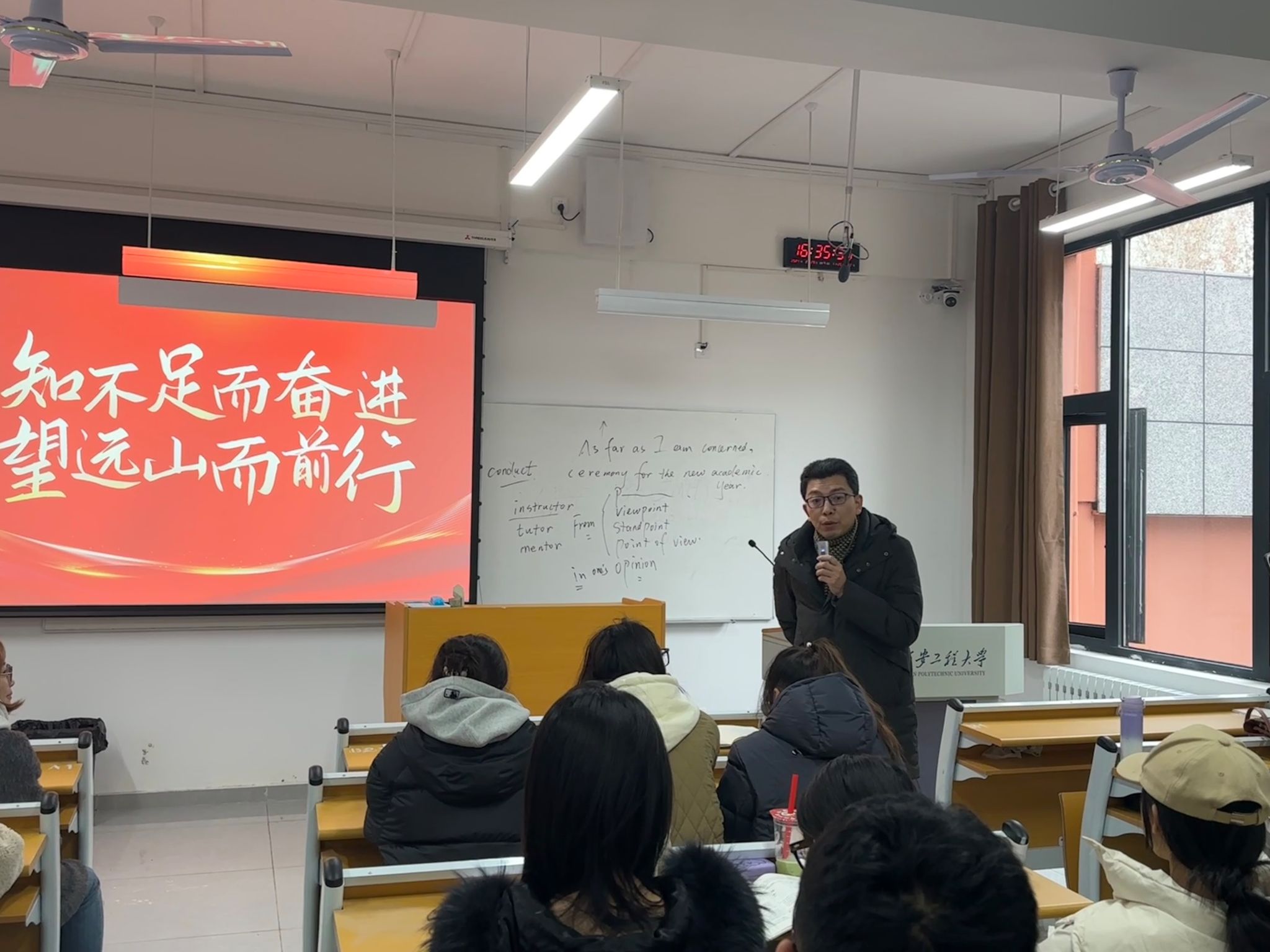 为帮助同学们快速调整状态、以积极饱满的面貌迎接新学期的到来,91av 于2024年2月29日在临潼、金花两校区教学楼召开2023级开学第一课。学院党委副书记赵文熙、辅导员宾田田及91av 2023级全体学生参加会议。