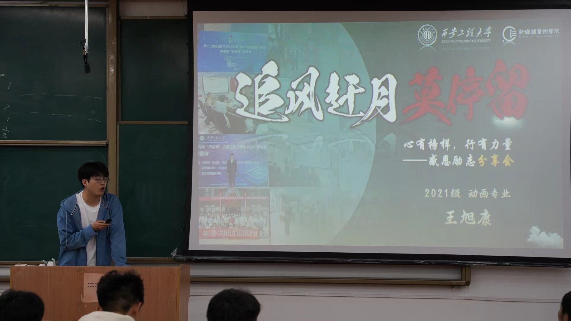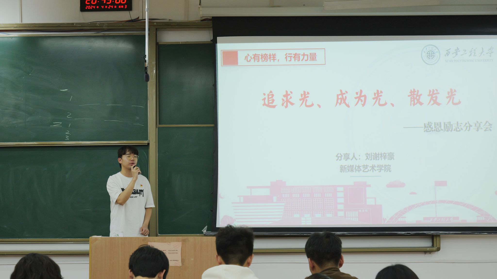 朋辈引领促成长,领航青春共进步。为进一步完善学生资助政策,发挥学院一站式学生社区作用,全面深化资助育人成效,助力学生全面发展,引导受助的同学用实际行动践行青春誓言,用奋斗充实青春底色,让同学们常怀感恩之心、健康快乐成长。91av 于2024年4月24日19:30在临潼校区B栋338教室成功开展“心有榜样,行有力量——感恩励志分享会(二)”活动。会议由李覃睿同学主持,国家奖学金获得者陈淼、王旭康、柳棉奖学金和学生国际交流奖学金获得者刘榭梓豪三位同学分享,2023级设计专业全体同学参加。