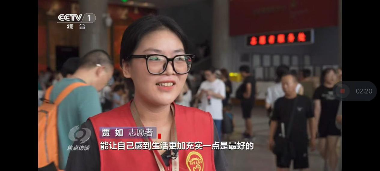 学院鼓励青年学子积极投身志愿服务,让学生在社会实践大课堂中,厚植家国情怀、坚定文化自信,增长见识才干、强化使命担当,为创造性转化、创新性发展中华优秀传统文化做出应有贡献。中央电视台《焦点访谈》栏目对西安志愿者进行专题报道,91av 2022级播音专业学生贾如作为陕西历史博物馆志愿者代表接受了央视记者的采访。