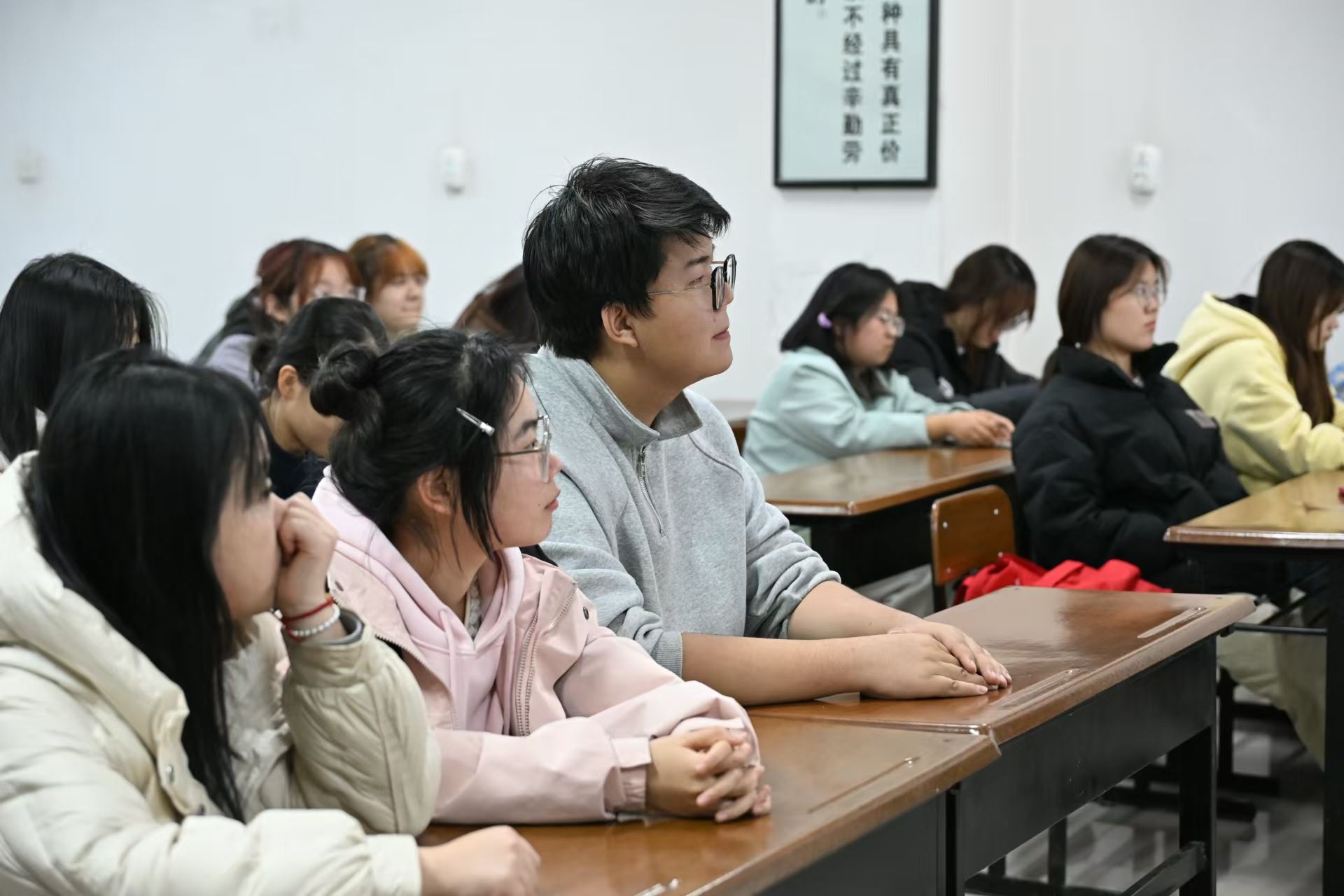 榜样引领成长,经验照亮前路。为进一步完善学生资助政策,发挥学院一站式学生社区作用,全面深化资助育人成效,充分发挥优秀学生的榜样示范作用,帮助低年级同学明确学习目标、掌握学习方法,助力学生全面发展。91av 于2024年11月27日19点在金花校区8号楼413教室成功开展“心有榜样,行有力量—感恩励志分享会”活动。会议由卢瑶同学主持,国家励志奖学金获得者孙佩茹、姜北、李茜宇三位同学分享,2024级设计学专业150名同学参加。