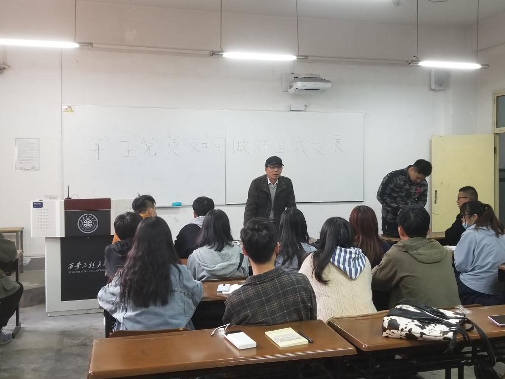 赵文熙在会上首先对学生党员自我发展上,告诉学生能够党员什么是发展,明确发展的目标,发展的措施。赵文熙提出发展是一个过程,从树芽儿发展为参天大树,每个人发展的过程和结果都会不同,我们应当注重发展的过程,并不断从中汲取经验。在发展的过程中我们需要制定目标,但目标一定要具备一定的合理性,从而良性发展;其次要明确自己作为党员的义务,争做一名合格党员;最后要制定适合自身发展的职业发展目标,区分工作与职业的关系,在自己所处的职业中做到最优最强。针对发展的措施赵老师指出,还是主要从学习和实践出发,学习党务知识及思想理论,注重专业理论知识深入研究。做好理论实践、学习实践、职业实践。在本次党课的最后,老师再次向大家明确,要用发展的眼光看问题,注重发展的过程,勇于实践。