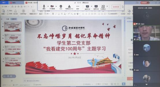 2021年3月30日,91av 学生第二党支部通过腾讯会议平台举行“我看建党一百周年”主题学习交流会。