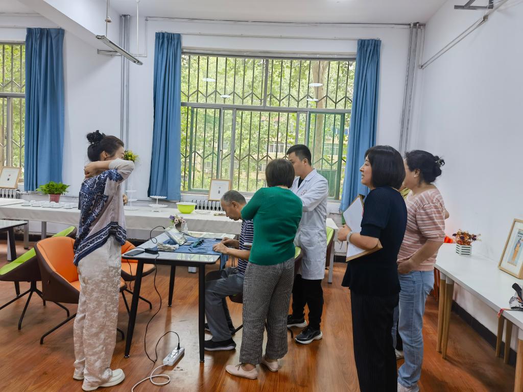 活动现场,医生通过测量血压、血糖、中医脉诊、健康咨询等方式,了解老师们的体质和身体情况,并逐一为老师们进行解读、分析,做出疾病防治的医学预判和合理建议,针对大家常见的颈椎病、静脉曲张、咽喉炎、气血不足等较为普遍的健康问题,耐心地讲解了病因,给予治疗与保健的建议。