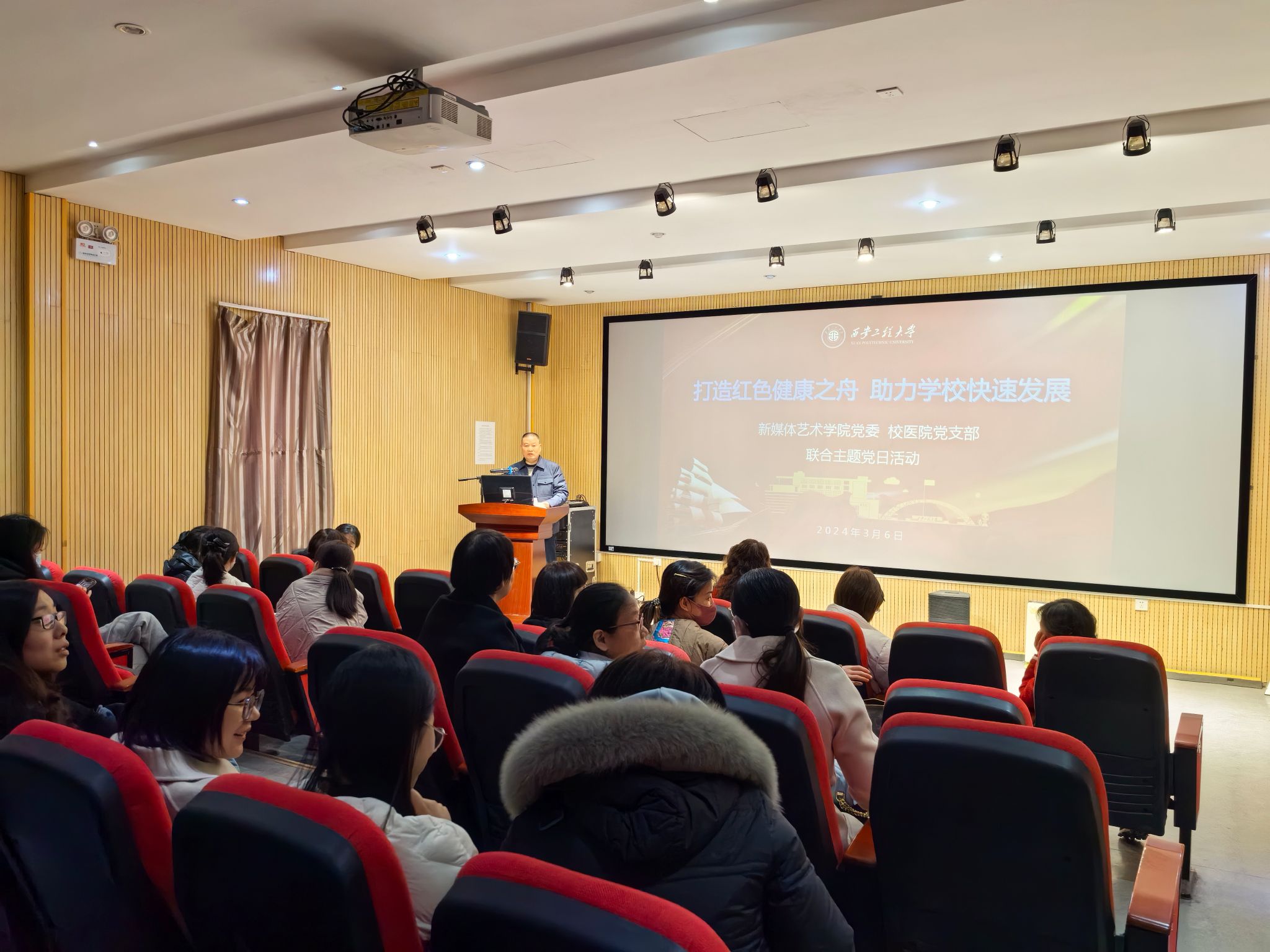 为深入学习贯彻习近平新时代中国特色社会主义思想,进一步激励党员干部担当作为、奋勇争先,引导党员关注身心健康,助力于学校高质量发展。3月6日下午,91av 党委、校医院党支部在金花校区8号楼观摩室联合开展”打造红色健康之舟,助力学校快速发展”主题党日活动,活动由91av 党委书记张瑾主持,校医院党支部书记刘蔓茹、80余名教工党员参加活动。