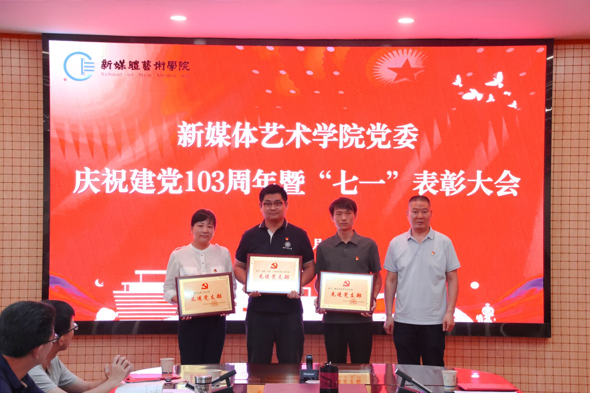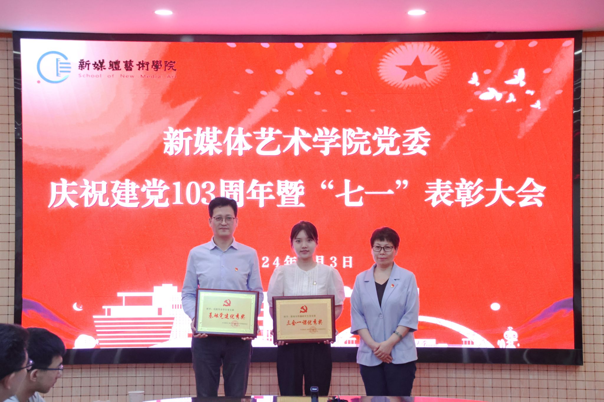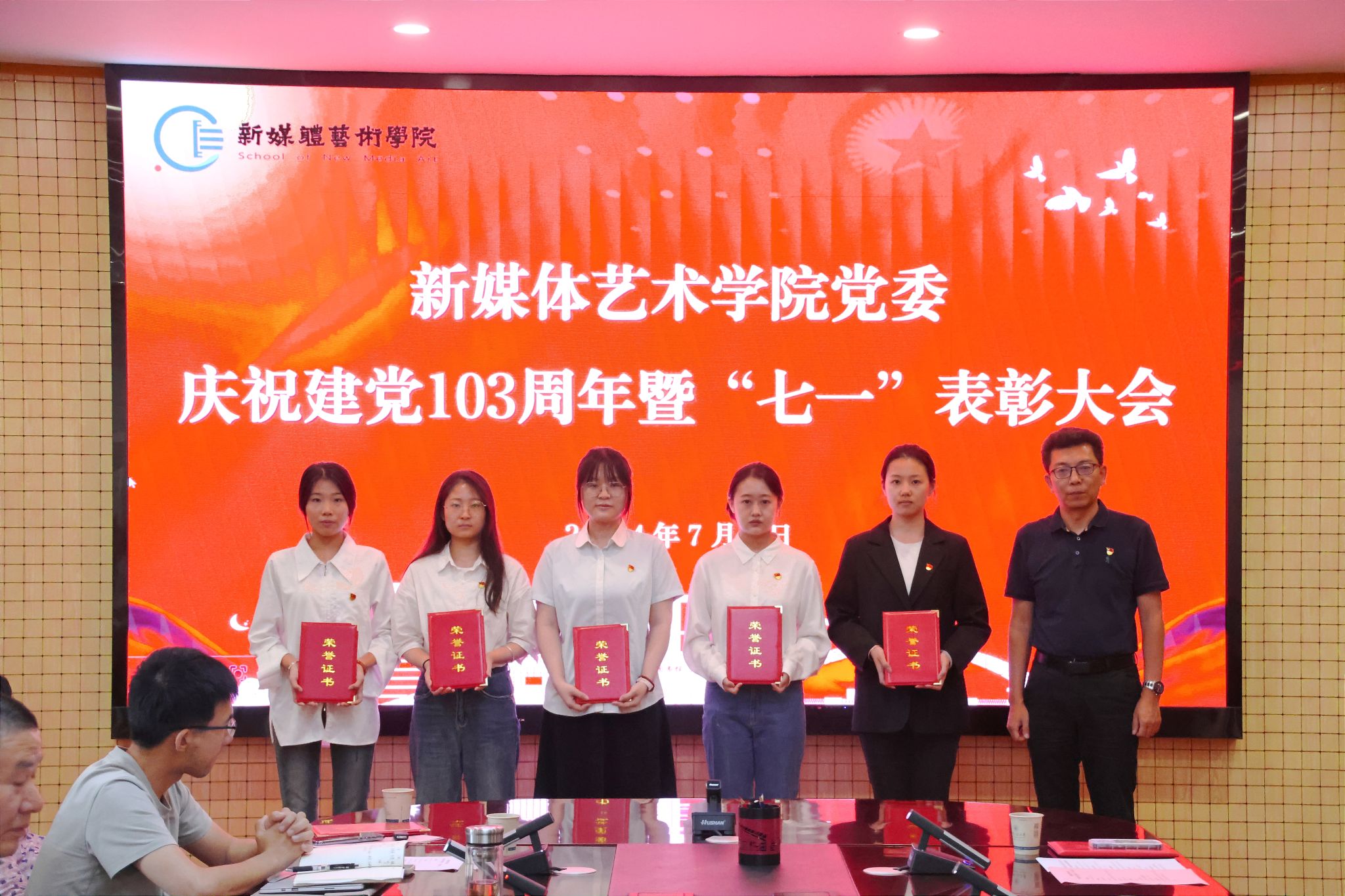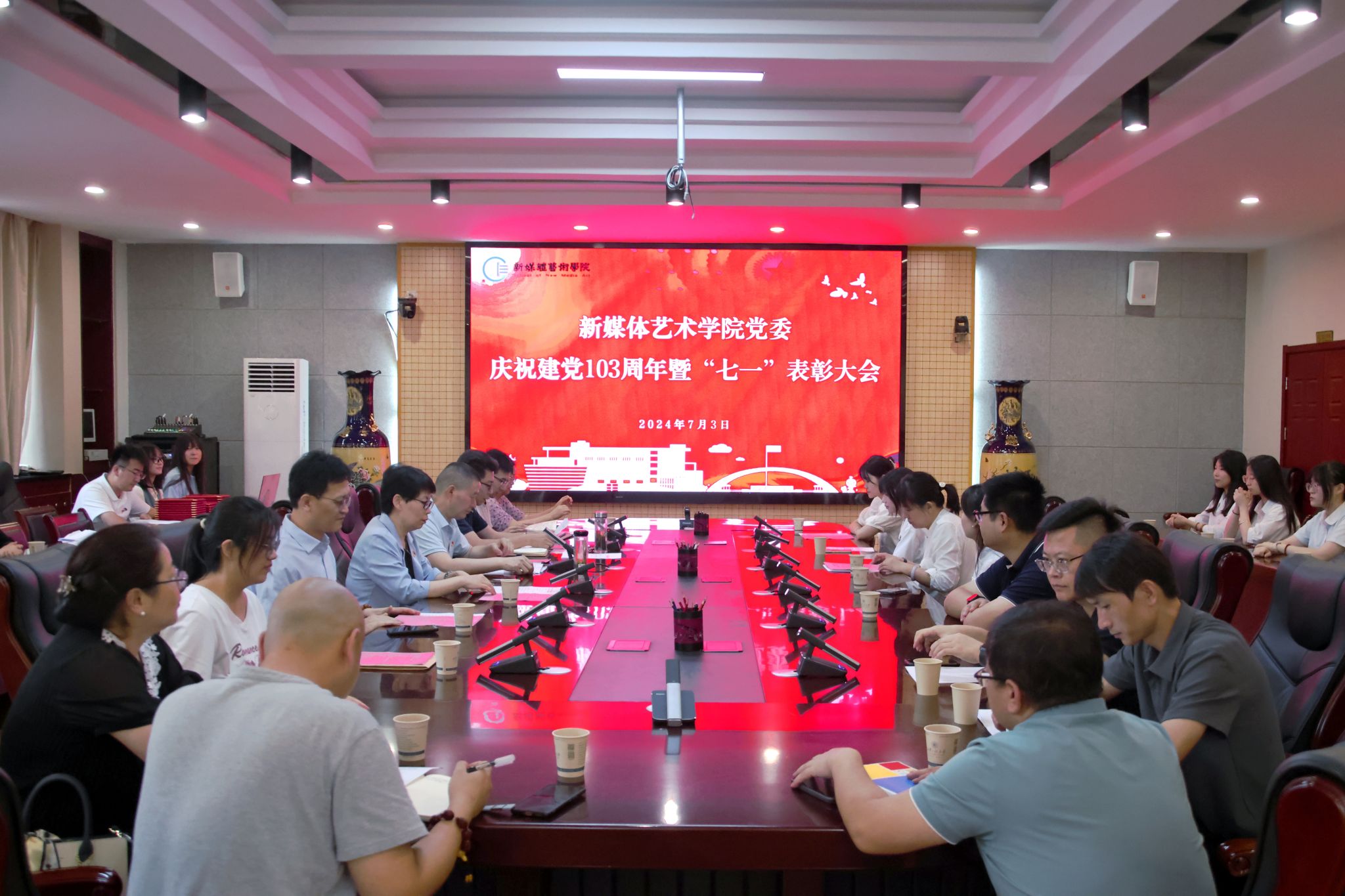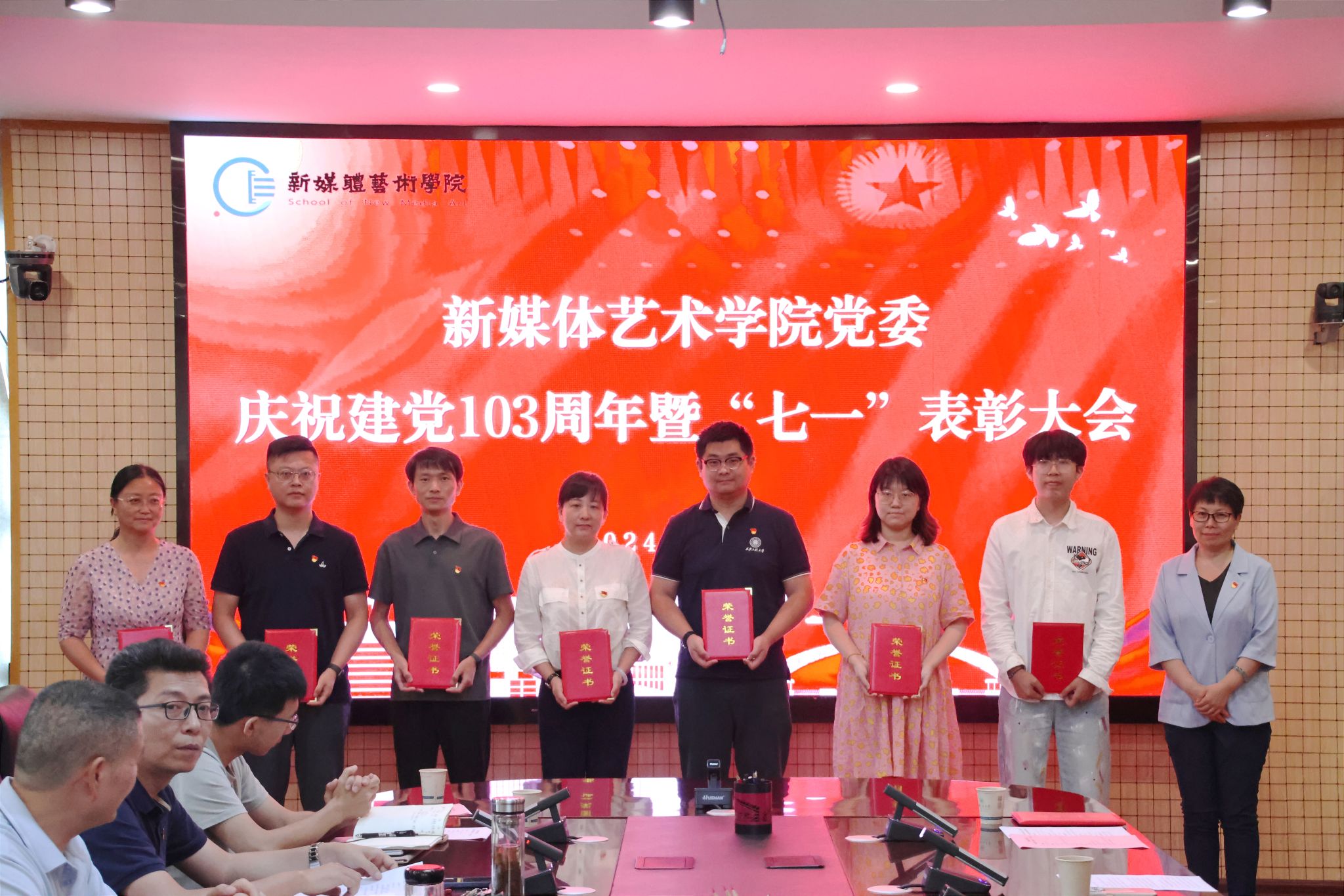 为庆祝中国共产党成立103周年,进一步表彰先进、弘扬正气,提振精神、凝聚共识,7月3日,91av 在金花校区第三会议室召开庆祝中国共产党成立103周年暨“七一”表彰大会。学院党委书记张瑾、院长丛红艳出席会议,全体党支部书记、受表彰的先进集体和个人、第66期预备党员参加了大会。会议由院党委副书记赵文熙主持。