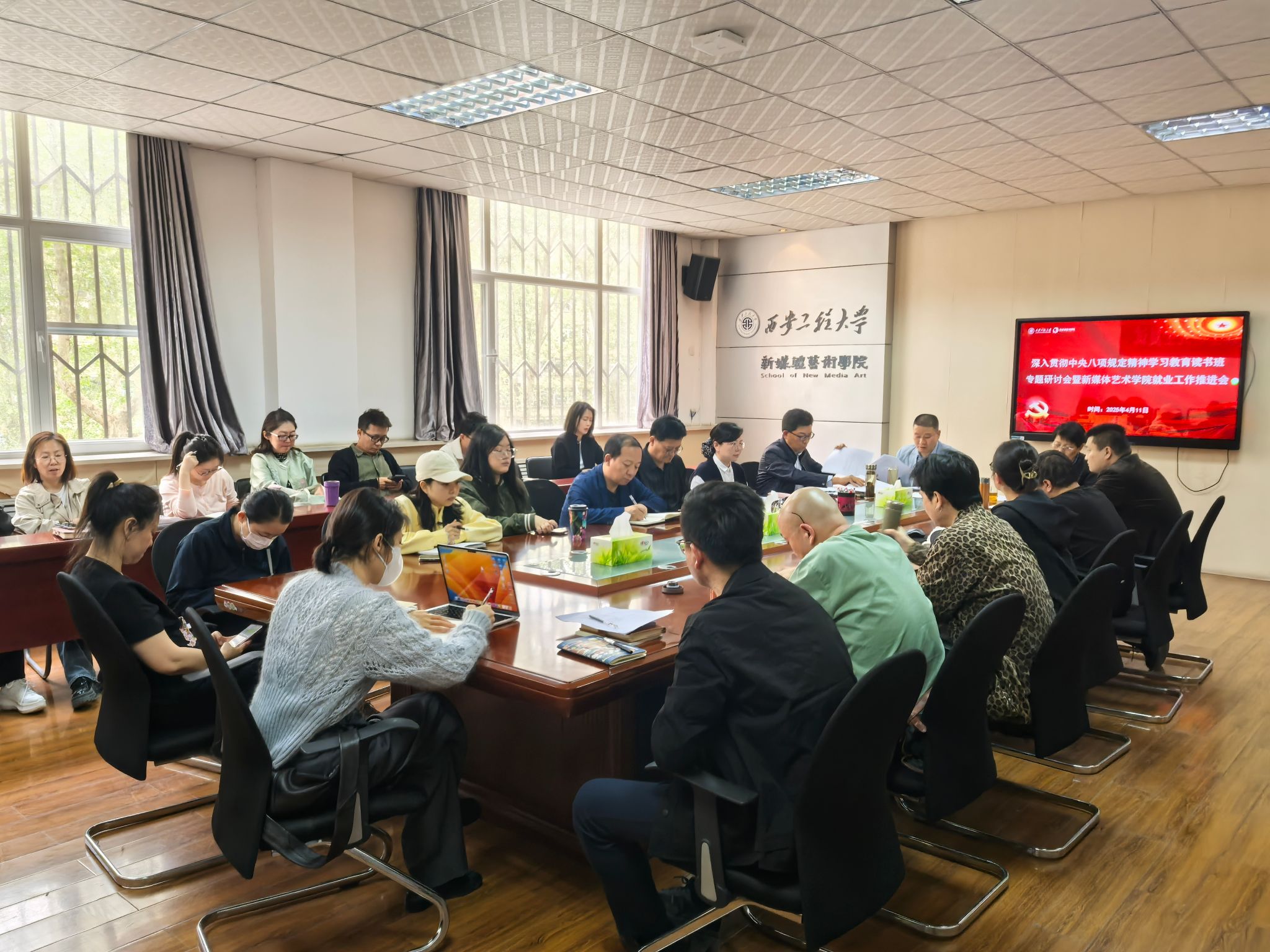 4月11日下午,91av 党委深入贯彻中央八项规定精神学习教育,召开专题研讨会,研究推进学院就业工作。学院党委班子成员、各党支部书记、各系办负责人、研究生导师、研究生辅导员、本科毕业班辅导员参加会议,会议由学院党委书记张瑾主持。