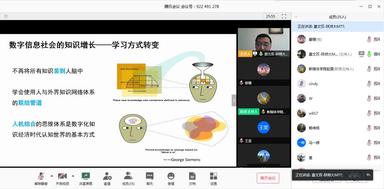 4月1日下午,为加强疫情管控下教学法研究活动的开展,91av 组织全院教师参加线上集中教学法研究活动,特别邀请陕西师范大学教师专业能力发展中心/现代教学技术教育部重点实验室信息技术与教学研究室葛文双研究员结合现已开展的线上教学工作,为91av 教师在线上分享了一场“在线教学如何组织深度的学习讨论”的专题讲座。
