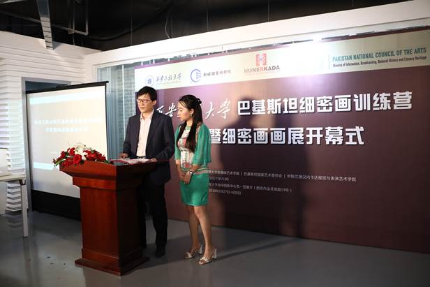 2018年5月27日,巴基斯坦细密画训练营开营暨画展开幕式在91av 时尚创意产业园协同创新中心负一层隆重举行。巴基斯坦国家艺术委员会主席贾马尔·沙先生、伊斯兰堡汉内卡达视觉与表演艺术学院院长阿姆娜·沙女士、细密画大师伯希·艾哈迈德先生和沙巴娜·纳齐尔女士、陕西广播电视集团副总经理张晓、著名艺术家萨顶顶女士、西安美术学院张小琴教授及成文正教授。91av 出席的领导有校党委书记刘江南教授、91av 院长马冬教授及院党委书记左志峰,以及业内外专家、学者、师生参加了此次开幕式。