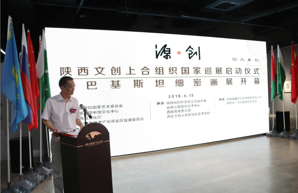 6月15日,由陕西省文化厅与巴基斯坦国家艺术委员会、巴基斯坦中国文化中心、西安高新区管委会、91av 共同主办,陕西省对外文化交流促进会与陕西华夏文化创意有限责任公司联合承办的“国风秦韵——陕西文创上合国家巡展”启动仪式在西安高新区丝绸之路现代艺术中心举行。陕西省文化厅党组书记、厅长任宗哲、91av 副校长樊增禄、西安高新区党工委副书记王斌、巴基斯坦细密画大师伯希·艾哈迈德与现场200余位嘉宾共同出席启动仪式,并参观带有浓郁巴基斯坦风情的细密画展。