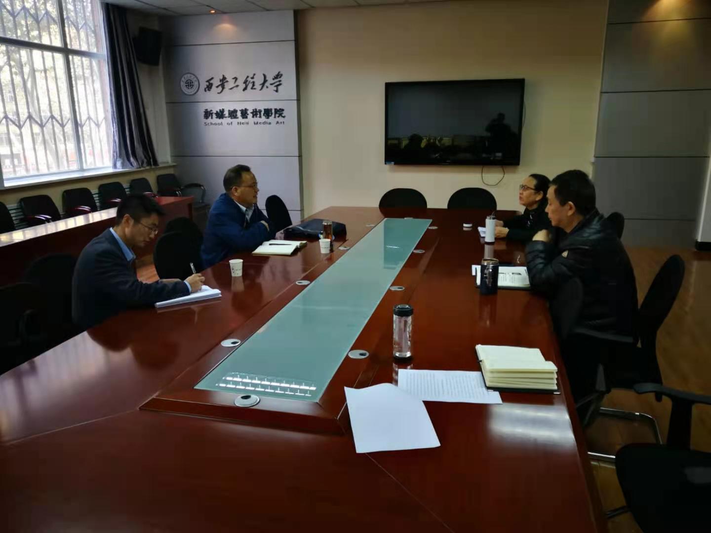 2020年11月9日下午,校党委副书记朱君强在校党委宣传部部长王志陪同下深入91av 就校园文化宣传工作开展工作调研。院党委书记左志峰、院党委副书记高翔、院党委组织委员、学工办主任赵文熙参加了调研座谈。
