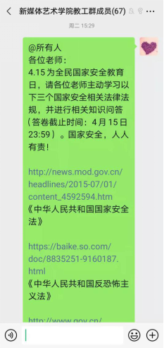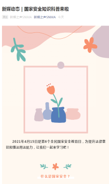 4月15日,学院公众号“新媒之声”发布主题推文《国家安全知识科普来啦》