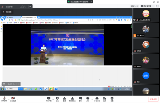 为确保常态化疫情防控中学院实验室安全运行,保障广大师生人身安全和校园稳定,落实全国高校实验室安全工作会议精神和教育部办公厅《关于组织开展2022年高等学校实验室安全检查工作的通知》文件部署,根据陕西省教育厅《关于组织参加2022年高校实验室安全培训会》文件精神,2022年4月19日,91av 副院长王坚和全体实验员参加了2022年高校实验室安全线上培训会。