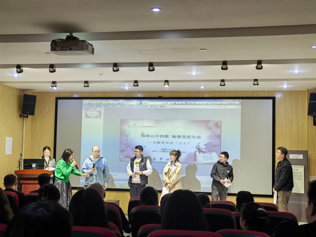 3月7日下午,在金花校区8号教学楼六楼观摩室,举行“唱响心中的歌畅想美好生活”以歌抒怀庆“三八”活动。活动由播音与主持艺术系教师武琼老师担任,院党委书记张瑾向全体女教工表示节日祝福。现场在一首首或温馨、或奋进、或励志、或展望、或祝福的歌声中,高潮迭起,充满着欢声笑语。