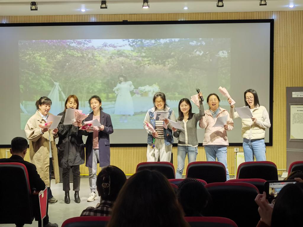 3月8日上午,在金花校区二楼大厅,举行“春风‘颂’暖”妇女节致敬活动。女教师们不仅在“祝福”墙上留下对节日和未来生活的美好祝愿,同时通过“成语猜谜”的互动游戏获得精美纪念品。通过开展主题活动,今年的“女神节”更加丰富、更加温情。