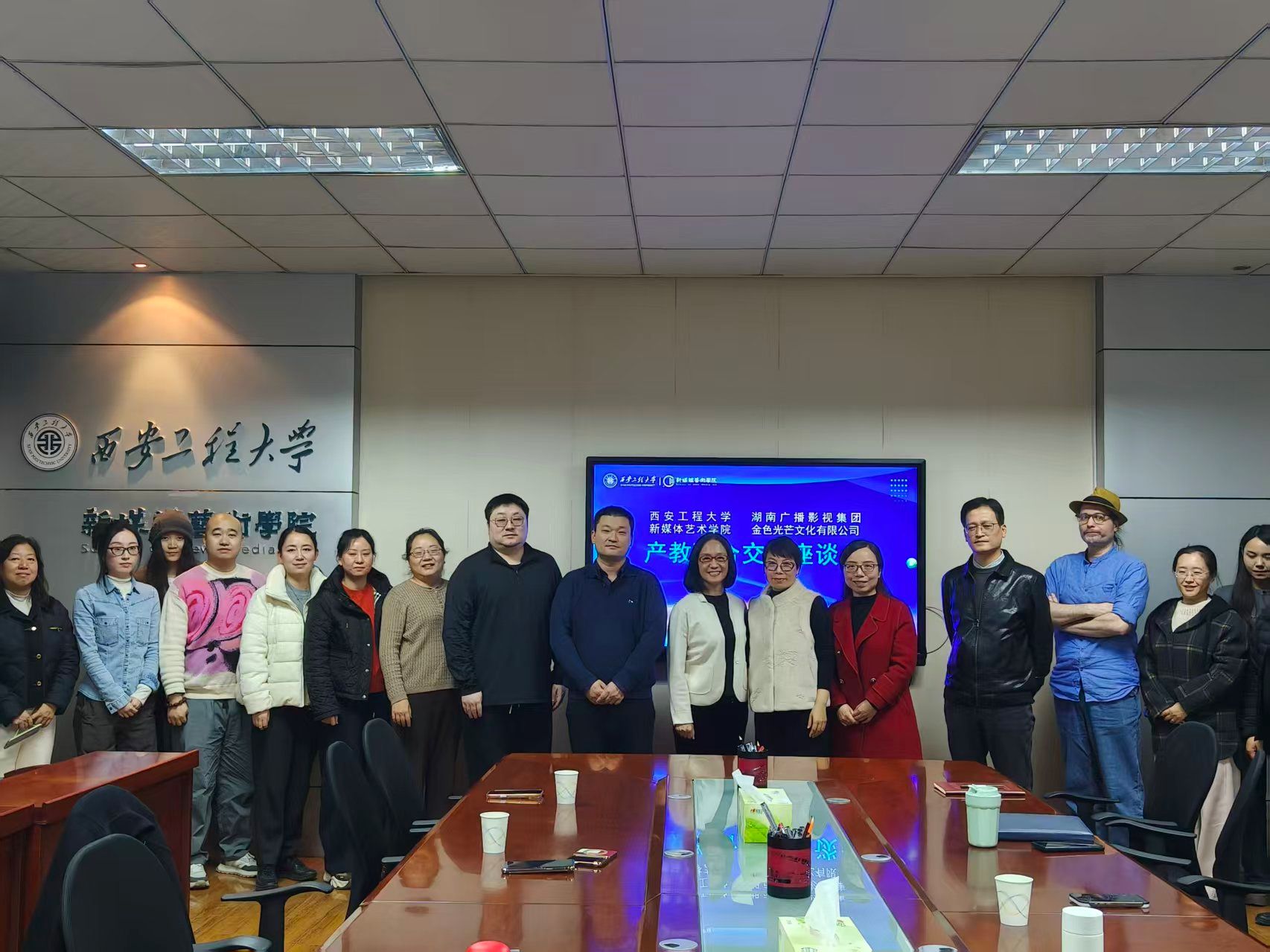 12月12日,91av 举办产教融合专题交流座谈会,特邀湖南广播影视集团金色光芒文化有限公司执行董事、总经理、著名影视制作人何瑾女士与会交流。学院院长丛红艳、副院长姒晓霞、副院长王晨仰及各系主任、骨干教师及青年教师代表参加了座谈,围绕产教融合、协同育人、校企资源对接等议题展开深入研讨。