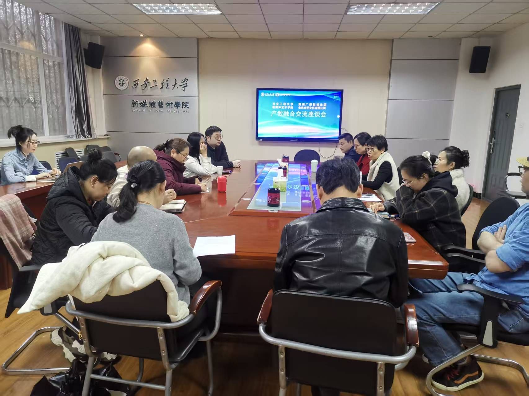 丛红艳首先对何瑾女士的到来表示热烈欢迎,并向其介绍了学院的总体情况。何瑾结合金色光芒文化有限公司的发展实践,系统介绍了企业在产业转型升级过程中与高校开展产教合作的成功经验与典型案例。随后,学院动画系主任张宝山介绍了专业发展情况,并展示了以往校企合作的诸多项目成果。广播电视编导系副主任王旻介绍了专业协同多家企业在微短剧创作及学生培养等方面的积极探索。