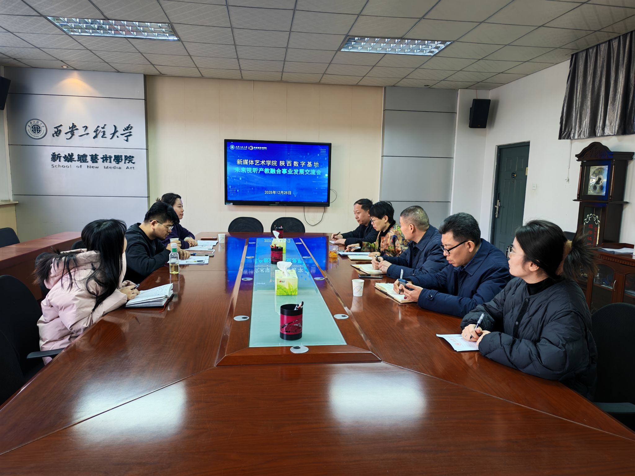 交流伊始,院党委书记张瑾向陕西数字基地一直以来对学院的支持以及此次王奕然先生一行的到来表示了热烈欢迎和诚挚谢意。随后,丛红艳院长与王奕然先生就校企产教融合发展围绕双方资源整合、合作架构搭建、具体合作项目、未来实现效果等方面进行了深入交流与沟通,并就有关合作达成初步意向。