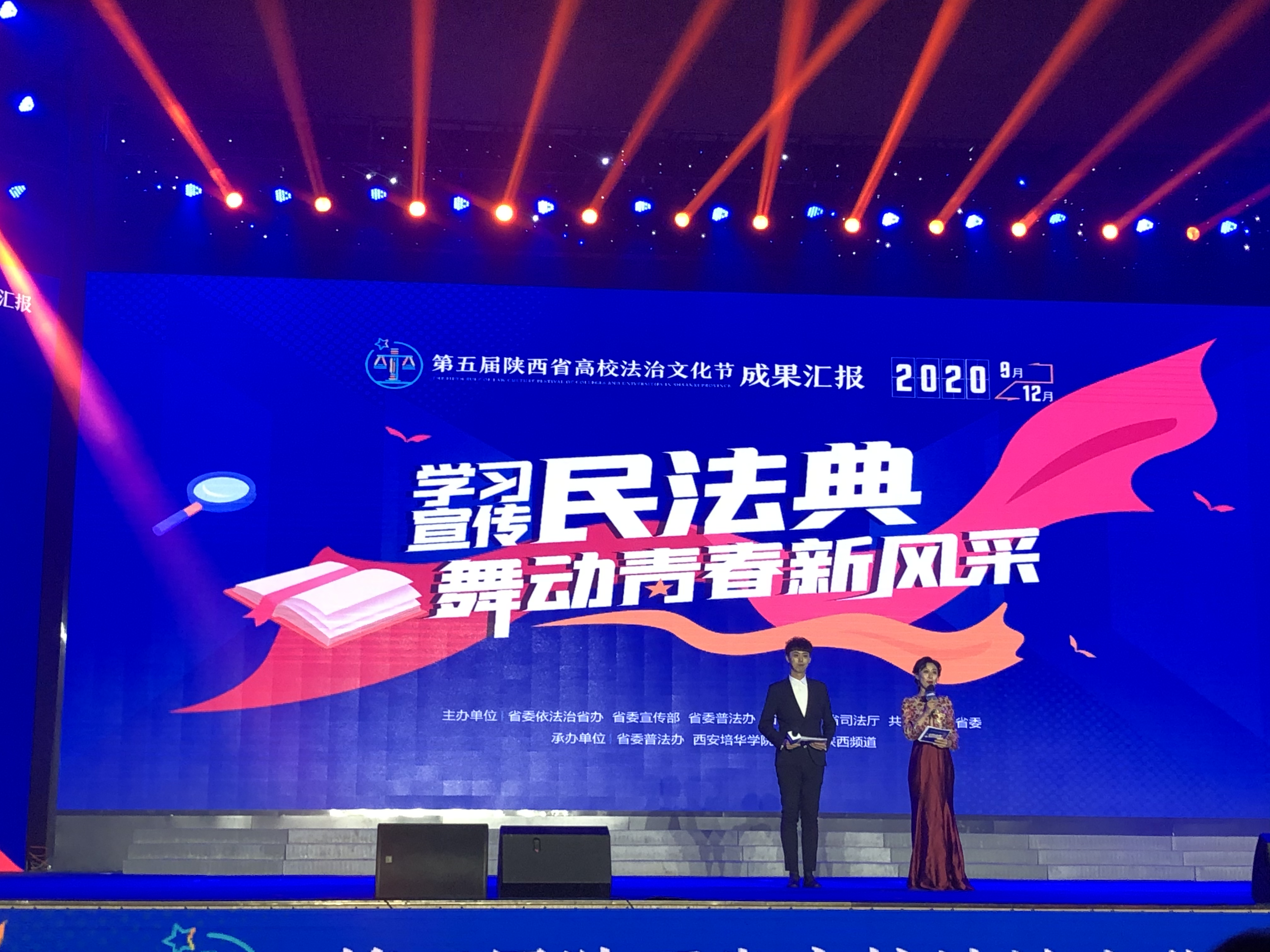 2020年12月1日,第五届陕西省高校法治文化节成果汇报在西安培华学院举行。省人大常委会党组副书记、副主任、省委普法工作领导小组副组长姜锋,省委依法治省办、省委宣传部、省委普法办、省教育厅、省司法厅、共青团陕西省委有关负责同志及西安培华学院领导和部分高校大学生代表近500人参加了成果汇报活动。主办单位对第五届陕西省高校法治文化节获奖单位和个人进行了表彰,91av 荣获优秀组织单位奖,91av 播音与主持系选送精彩的朗诵节目《法治颂》参加了文化节成果汇报。