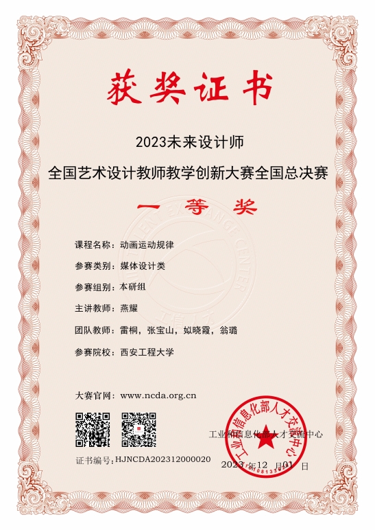 日前,2023年未来设计师·全国艺术设计教师教学创新大赛(教创赛)课程赛道全国总决赛在上海工程技术大学圆满落幕。我校91av 燕耀等教师组成的团队主讲《动画运动规律》课程通过现场答辩,获得2023年未来设计师·全国艺术设计教师教学创新大赛(教创赛)课程赛道全国总决赛一等奖。