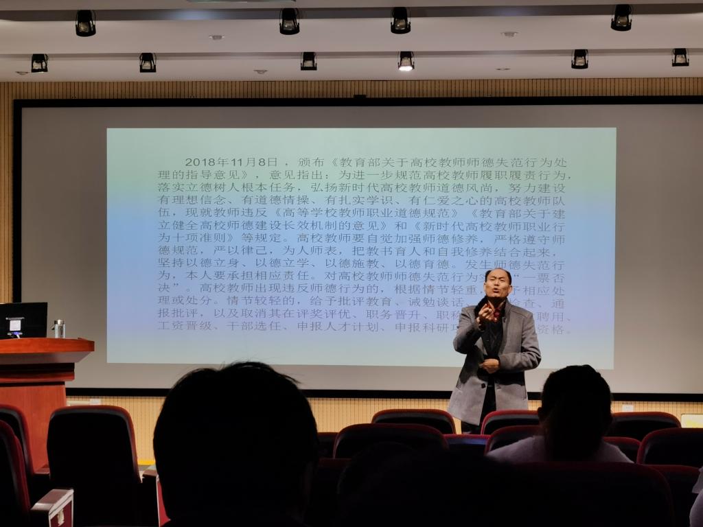 2020年12月10日,91av 邀请西安文理学院冀德荣教授做了题为《信仰与真诚——师德的灵魂》的师德专题讲座,全体教职工和部分学生参加了本次讲座。