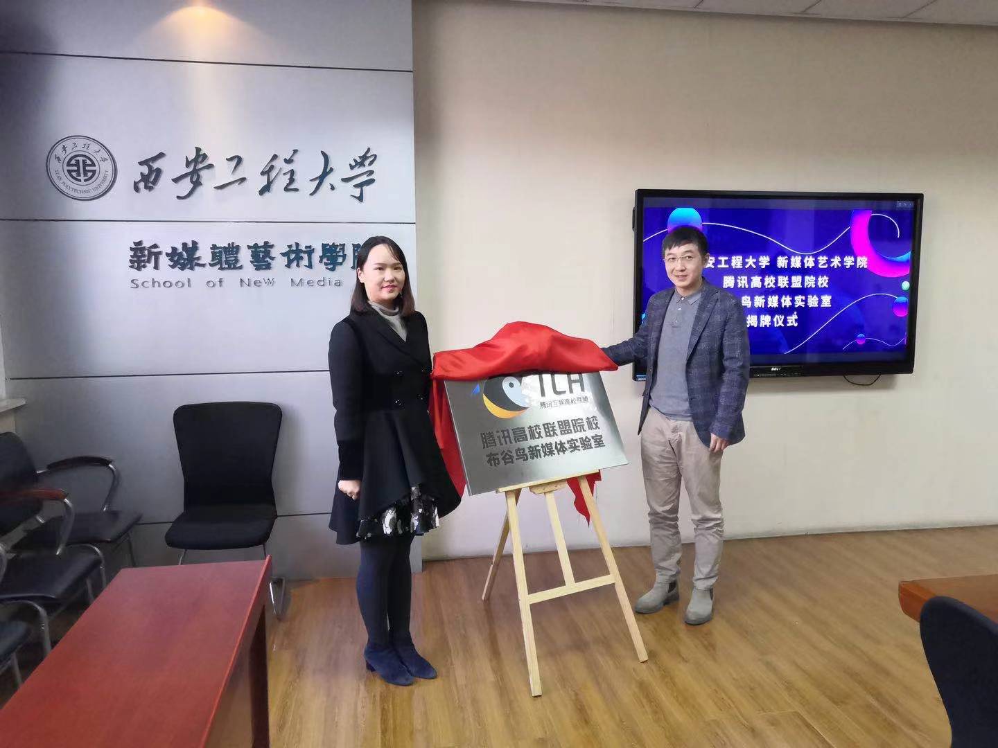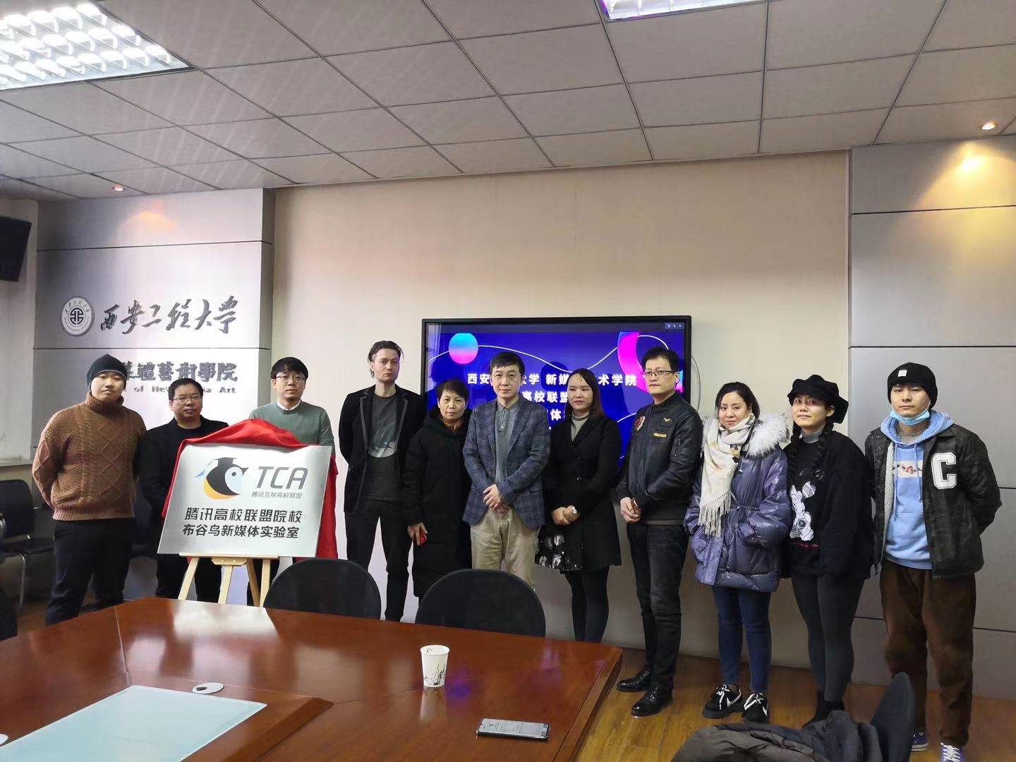 2021年1月7日, 腾讯高校联盟院校布谷鸟新媒体实验室在91av 会议室落成。腾讯互娱平台营销部陕西片区市场经理朱莉,91av 院长马冬、副院长丛红艳、动画专业教师出席了仪式,仪式由影像动画艺术系主任雷桐主持。