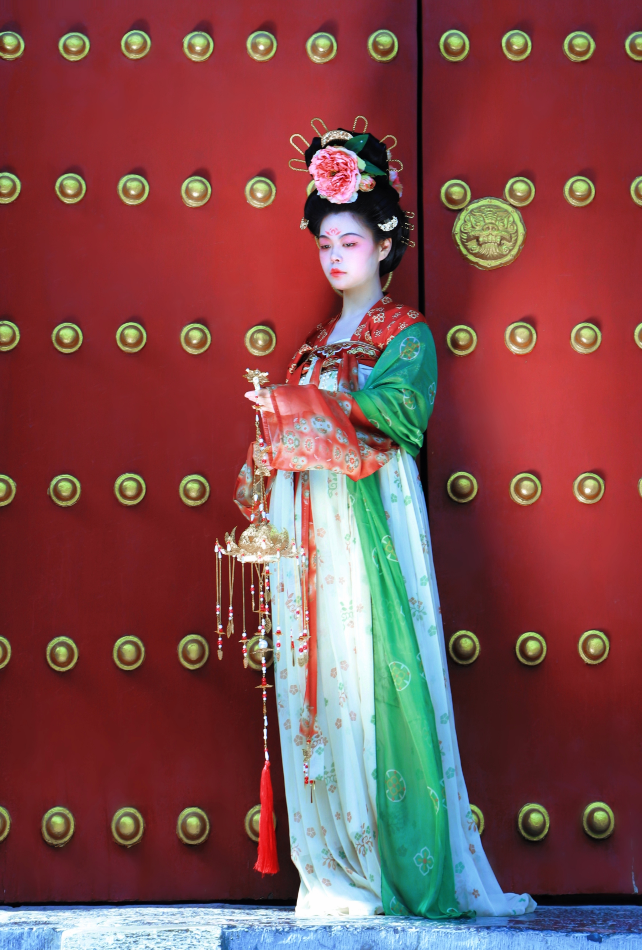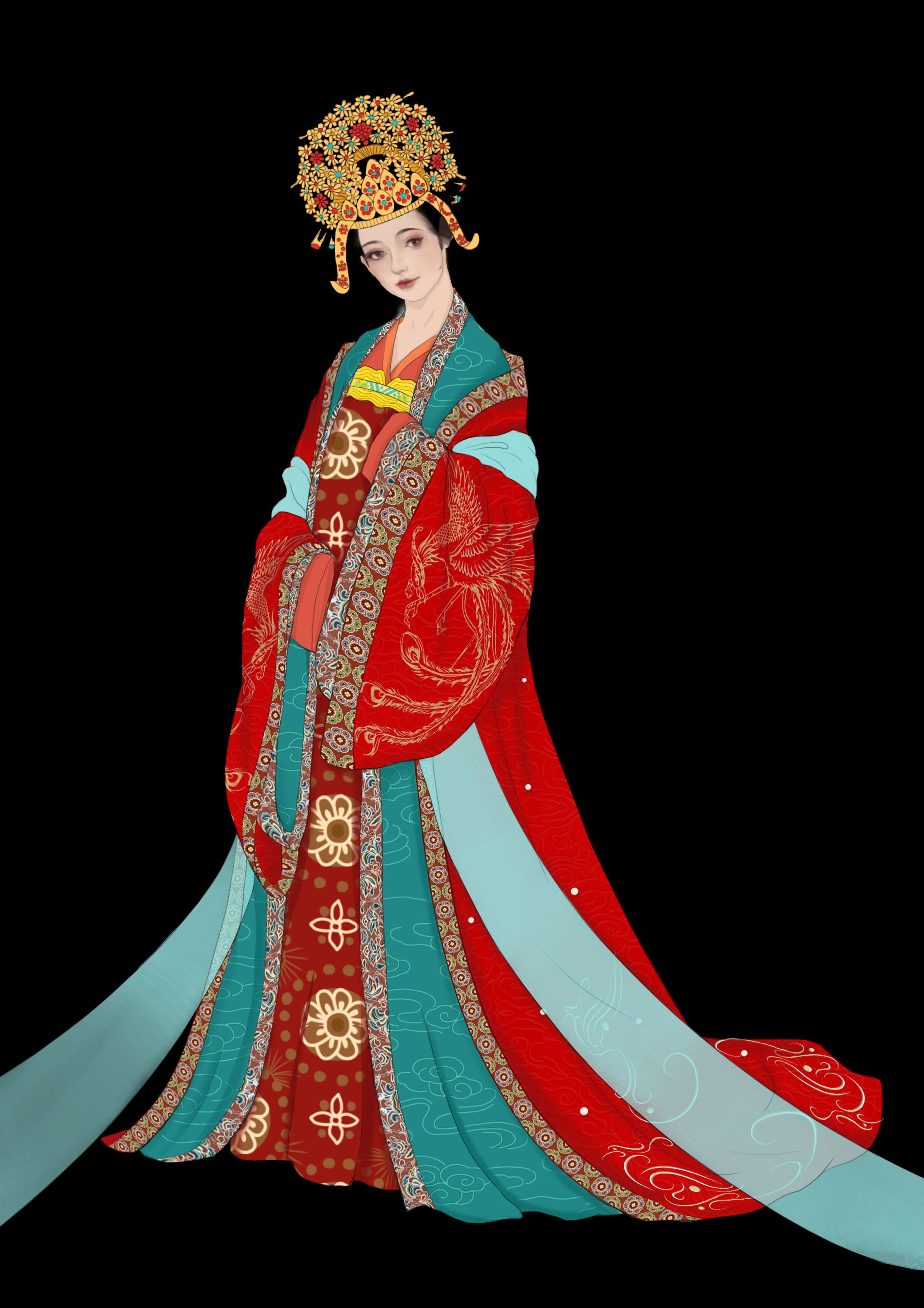 91av简介 :以盛唐时期为背景,以宫廷女性常服为主要方向进行设计制作,多用盛唐时期所流行的齐胸襦裙,坦领,半臂为主要形制,搭配宝相纹,团花纹,缠枝纹为主要纹饰。服装配色以当时期的流行色为元素进行大胆搭配,用大幅面料进行制作,诠释了盛唐时期宫廷女性的开放与大胆。